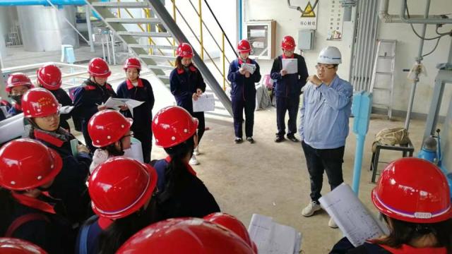 接下來(lái)兩天,同學(xué)們?cè)谡莆毡仨毜幕纠碚撝R(shí)后,穿戴好工作服、安全帽,步行前往實(shí)訓(xùn)裝置現(xiàn)場(chǎng)參觀學(xué)習(xí)。在車間里,同學(xué)們聚精會(huì)神,運(yùn)用化工專業(yè)理論知識(shí),就氧化和水解工段各物料路線進(jìn)行探討、研究及分析,不僅拓寬了學(xué)生的知識(shí)面,還增加了學(xué)生的感性認(rèn)識(shí),把所學(xué)知識(shí)條理化系統(tǒng)化,為今后的學(xué)習(xí)和將從事的工作打下堅(jiān)實(shí)的基礎(chǔ)。