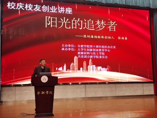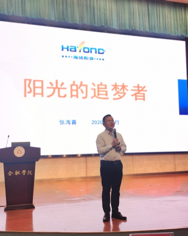 童玉松在開(kāi)場(chǎng)致辭中代表學(xué)校歡迎優(yōu)秀校友張海喜返校,他指出,成功者的路,都是在感天動(dòng)地的努力中,用汗水、智慧和堅(jiān)毅輔就的。接下來(lái),作為深圳海揚(yáng)粉體科技有限公司創(chuàng)始人張海喜分享了畢業(yè)十余年創(chuàng)業(yè)歷程。他談到其中的每個(gè)時(shí)間段都是成功路上的里程碑,記錄著他的青春奮斗史。而這些例子也激勵(lì)著學(xué)生們?nèi)ビ赂易穳?mèng)。不僅如此,他還向同學(xué)們講述自己艱難徒步沙漠,爬雪山最終抵達(dá)終點(diǎn)的經(jīng)歷,并對(duì)此抒發(fā)的自己的感想。他指出,創(chuàng)業(yè)的過(guò)程并不是一帆風(fēng)順,多年以來(lái)積累的資產(chǎn)曾因一場(chǎng)臺(tái)風(fēng)損失慘重,面對(duì)這次沉重的打擊,他并沒(méi)有選擇放棄,而是繼續(xù)尋找出路,最終以鳳凰涅槃的姿態(tài)迎來(lái)公司更好的發(fā)展。最后,張海喜表達(dá)了自己對(duì)新一代創(chuàng)業(yè)者的鼓勵(lì)和期望。