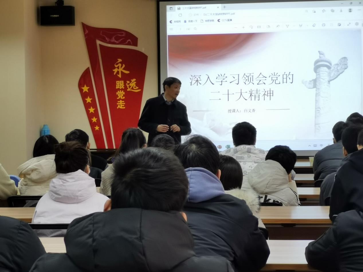 黨的二十大召開以來,學院黨委堅持把學習宣傳貫徹黨的二十大精神作為當前和今后一個時期的主要政治任務。為積極響應黨中央與學校黨委關于學習貫徹落實黨的二十大精神相關部署,12月1日,于生化樓三樓學術交流中心,組織部部長白義香以“深入學習領會黨的二十大精神”為主題,給材化學院第三黨支部學生黨員和全院新發(fā)展黨員上了一堂生動的黨課,院黨委書記劉沛平、副書記魏安樂和全體輔導員參加學習。