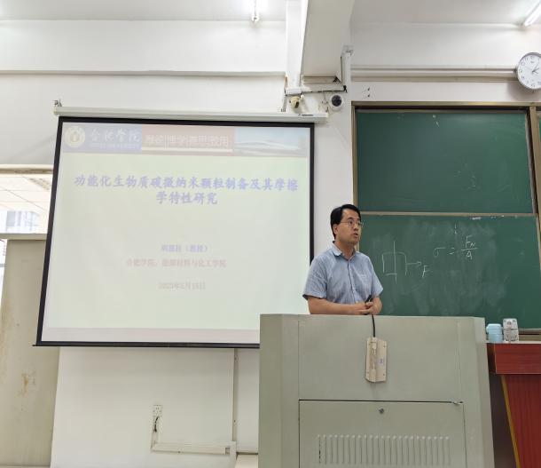 515號(周一)下午1400,由合肥學院材化學院胡恩柱教授做題為“功能化生物質碳微納米顆粒制備及其摩擦學特性研究” 學術報告,報告由材化學院院長胡坤宏教授主持,學院部分青年教師、研究生和本科生聽取了報告。