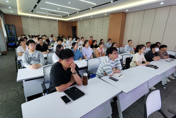 學術報告結束后,胡院長向三年級本科生介紹了我院2024年研究生招生與培養情況,全方位展示了我院的發展歷程、學科碩士點建設、科研成果、導師隊伍和校園環境等,并邀請同學們今年暑假到合肥學院來參觀學習。鄧崇海副院長介紹了近幾年我院研究生的報考和招生以及獎學金具體情況,結合當前是我院即將迎接教育部專家進??疾旄髮W的大好發展機遇,以及20級聯合培養畢業生支國偉同學的科研成果展示,動員并鼓勵大家第一志愿填報我院2024年碩士研究生。