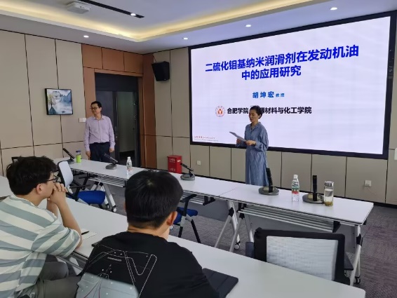 下午2時許,在材料工程學院郝凌云院長主持下,胡院長結合自己申報國家自然科學基金的經歷和科研成果,給該院學生做了一場題為“二硫化鉬基納米潤滑劑在發動機油中的應用研究”學術報告,引導學生如何在科研過程中發掘科學問題、凝練學術思想,深入淺出的介紹了課題組在發動機油中添加二硫化鉬基納米潤滑劑對機械潤滑性能提升方面取得的一系列科研成果。
