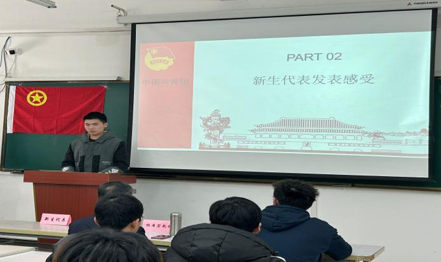 本次團(tuán)日活動(dòng)共有6個(gè)議程,團(tuán)員代表發(fā)言、新生代表發(fā)表感受、調(diào)查問卷匯報(bào)、楊教授講話、全體奏唱團(tuán)歌、全體合影