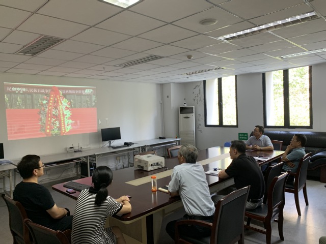 9月3日上午9時50分,在行政樓3樓會議室,機關黨支部二支部組織全體黨員同志集中觀看了抗戰勝利紀念日敬獻花籃儀式直播。