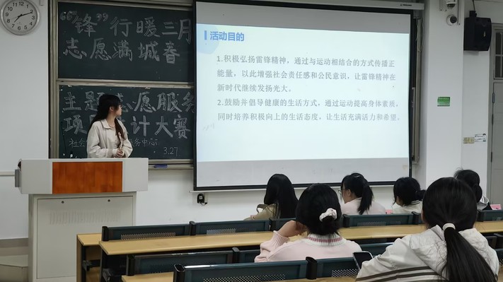 3月27日晚上19時(shí),教育學(xué)院于3號(hào)教學(xué)樓101室舉辦了主題為“‘鋒’行暖三月,志愿滿城春”的志愿服務(wù)項(xiàng)目設(shè)計(jì)大賽。 賽前,各隊(duì)在簽到處通過抽簽確定上臺(tái)演講的順序,每支隊(duì)伍都表現(xiàn)出飽滿的熱情與期待,主持人詳細(xì)介紹了本次比賽的背景、規(guī)則與評(píng)分標(biāo)準(zhǔn)及此次活動(dòng)的深遠(yuǎn)意義。伴隨著主持人的開場(chǎng)白,這場(chǎng)充滿活力與創(chuàng)新的比賽正式拉開了序幕。
