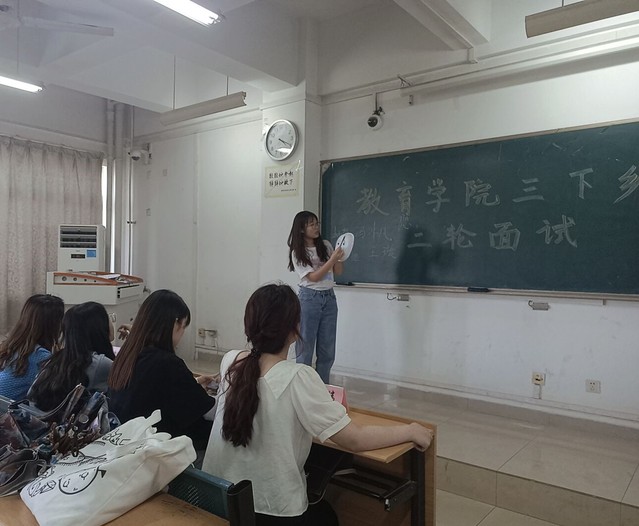 籌備工作火熱進行中,志愿精神廣泛傳播著 ——2021年教育學院三下鄉二輪面試 6月22日下午4點,教育學院“三下鄉”第二輪面試如期舉行。面試當天,工作人員提前到達3棟301教室進行準備工作,組織部部長沈文君、副部長童騰平給委員們分配好寫黑板字、簽到、現場引導等一系列工作以后,三下鄉二輪面試便正式開始了。 同學們頂著炎炎夏日早早地來到了面試現場,在303教室緊張地準備著。二輪面試的內容與一輪面試截然不同,評委們選擇了無生課堂的形式,要求志愿者們根據自己的特長愛好選擇一門課程進行三分鐘的無生授課,以此來考察面試者的專業技能和應變能力。 面試現場,評委們認真記錄著面試者的表現,緊張地進行打分工作。有的同學選擇的課程是美工,她現場模擬教授孩子們繪制臉譜的過程,并且精心設計了與評委互動的環節;有的同學準備的內容是扎花,她拿出提前準備好的折紙,耐心講解著制作步驟,一張張白紙被折成了一枝枝花,最終被包扎成了漂亮的花束;有的同學選擇唱歌,小老師認真準備了教案,現場展示怎樣教授孩子們唱兒歌,一句句耐心地講解該如何去演唱…… 教育學院的學子們在講臺上大方展現著自己獨特的魅力,雖然時間只有短短三分鐘,但是志愿者們為我們帶來了一場場視覺和聽覺上的盛宴!相信這些同學的加入會使“青春向黨,育你同行”三下鄉實踐小隊成為一支更加優秀的團隊,讓我們共同期待二輪面試的結果吧! 在接下來的活動當中,希望教育學院的學子們能夠更加積極地投身于志愿服務活動,弘揚志愿服務精神,為國家和社會貢獻自己的一份力量。 (教育學院 孫雨淑 童騰平)
