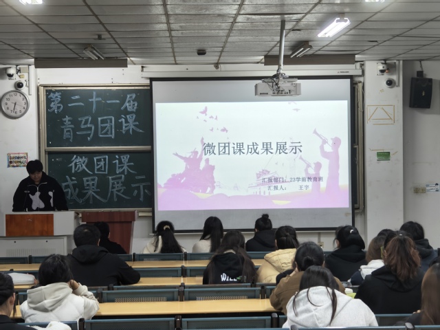 11月13日晚6:30分,教育學院于3棟101教室舉辦了第二十一屆青馬團課的微團課展示。本次活動由組織部委員徐錦瑤主持,評委由主席團成員周天藝、芮鷺潔,團委學生兼職副書記屠厚輝、李艾錦擔任,各學員以班級或部門為單位參加,各小組的12名代表學員分別上臺展示并交流,用百年奮斗歷程,筑牢青年思想根基。