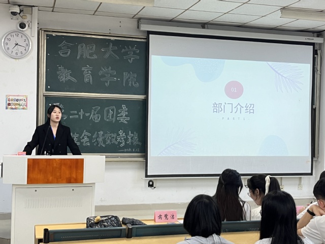 為了展示團(tuán)委學(xué)生會(huì)各部門在過去一年的工作成果,增進(jìn)學(xué)生會(huì)內(nèi)部溝通與交流,推動(dòng)學(xué)生會(huì)工作更好開展,6月12日晚7點(diǎn),教育學(xué)院第21屆團(tuán)委學(xué)生會(huì)部門績效考核在三棟101教室舉行,團(tuán)委學(xué)生會(huì)全體成員及主席團(tuán)成員參加,葛雨欣主持。