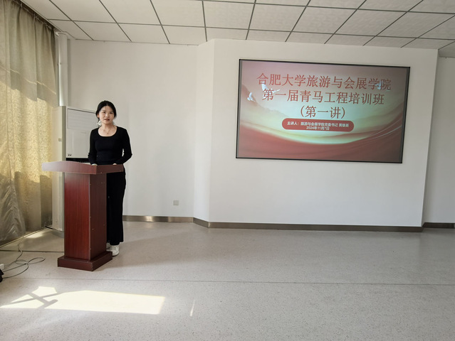 11月7日,合肥大學旅游與會展學院第一期青年馬克思主義者培訓工程第一課于一區博學樓二樓會議室順利開講。本次課程由合肥大學學習宣傳貫徹黨的二十屆三中全會精神宣講團成員、旅游與會展學院黨委書記黃雄英主講、團委負責人李娜主持、全體青馬班學員參與學習。