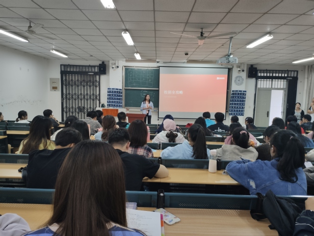 會議伊始,邢萍萍對當下大學生就業現狀作出了分析,大學生沒有實習經歷和工作經驗,同時也面臨著考研、考公、考編的選擇問題,對此她提出一方面大學生要自己做好兩手準備,另一方面企業在校招過程中對于應屆畢業生一般會有offer保留政策。接著她對簽訂三方協議相關問題簡要地分四點作出了解釋,為在場學生解開了許多疑惑。最后邢萍萍圍繞校招的含義、時間、優勢以及參與渠道等方面向大家詳細介紹了關于校招的重點內容,重點介紹了雙選會、宣講會、網申和企業新媒體平臺四種參與渠道。講座最后邢萍萍提醒大家要降低對工作的預期值,在網申過程中多關注崗位的關鍵詞,以便在自我介紹時契合崗位需要。同學們對此感到受益匪淺,講座圓滿結束。