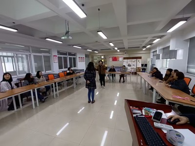 活動前,分工會委員精心準備好PPT,鮮花場地,道具材料等。活動每兩人一組,共分為8組進行,詞條涉及家用電器、日用品、水果、體育用品等日常接觸比較多的物品。表演者開動腦筋用肢體動作和相關描述向對方傳達意思,在規定時間內猜出最多的一組即為獲勝。活動一開始,大家就興致勃勃地玩開了,第一組小組還沒有進入狀態,答出來的謎底總是不對,臺下老師們摩拳擦掌、躍躍欲試;后面的小組配合默契,有一組的謎底“猴子”,一名老師就模仿孫悟空,隊友很快給出答案,大家也被夸張的表演惹得捧腹大笑,同時又報以熱烈的掌聲。