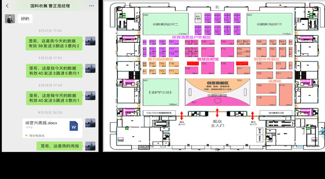 徐蕊和李紹悅同學負責專業觀眾的邀約。首先部門的曹正蘢經理給到了他們一個觀眾的數據表,這些數據表收集到的都是曾經觀展過的一些專業觀眾,他們每天有80個電話的任務指標。工作任務是要打電話給這些專業觀眾,邀請他們參觀在10月底的智體會。徐蕊同學在采訪過程中表示:“有時候面對沒有禮貌的客人確實很影響心態,但是在調節心態之后,很快的又能投入到工作狀態中?!边@兩位同學為這次展會邀請到了許多的專業觀眾,并且都添加到了微信里保持了長期的聯系。