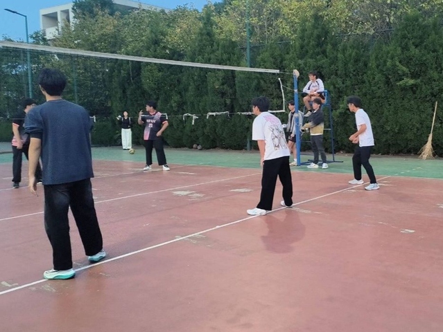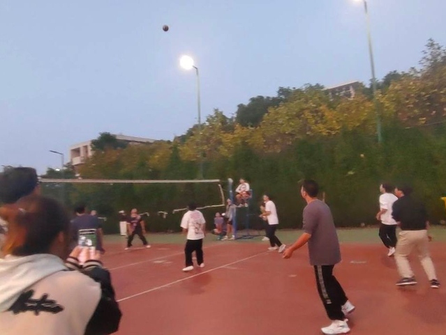 當一聲清脆的哨響拉開比賽的序幕,運動員們展開了激烈的比拼。隨著生物院鏗鏘有力的發球,全場氣氛瞬間被引燃,加油聲、吶喊聲絡繹不絕。彩繩飛揚,排球場上一派緊張熱烈的歡騰景象。即使在你來我往的防守與發球下,學院以較小分差落后于教育學院,但學院的男排隊員們依舊情緒高漲,在重整旗鼓過后以驚險的分數差距追上,在加時賽取得第一場比賽的勝利。隨著第二場比賽開始,各院男排隊員陸續入場,緊張的氛圍彌漫在賽場上。當哨聲的再度響起,男排隊員們沉著冷靜,積極應對,在教育院分數的步步逼近下調整心態,穩定發揮,順利拿下整場比賽的勝利。