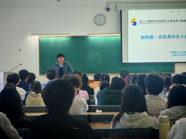 20241114日中午十二點半,生物食品與環境學院第三十期青馬班第三次授課于35107教室舉行,由生物食品與環境學院黨委書記李秀娟講授,院全體學生干部參與其中,此次課堂圍繞著“如何做一名優秀學生干部”這一主題展開。