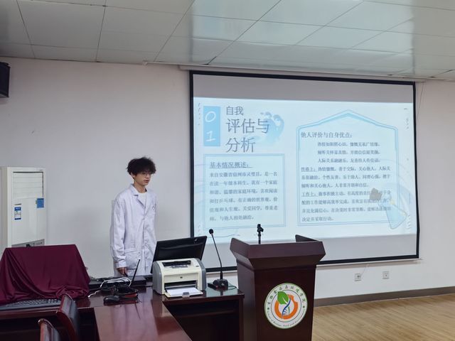 首先選手們按照抽簽順序上臺,通過PPT展示各自準(zhǔn)備的內(nèi)容,從自我分析開始,包括個人的興趣、特長、價值觀以及職業(yè)傾向。詳細(xì)闡述了自己的職業(yè)目標(biāo)、規(guī)劃路徑和實(shí)現(xiàn)步驟。接著,選手們會介紹他們對目標(biāo)行業(yè)的理解,包括行業(yè)趨勢、所需技能和潛在挑戰(zhàn)。選手們會設(shè)定清晰的短期和長期職業(yè)目標(biāo),并解釋這些目標(biāo)如何與他們的個人發(fā)展和職業(yè)規(guī)劃相匹配,展示了他們?yōu)閷?shí)現(xiàn)職業(yè)目標(biāo)所制定的具體行動計劃,包括教育計劃、技能提升、實(shí)習(xí)機(jī)會和網(wǎng)絡(luò)建設(shè)等。最后面對評委的提問,選手們也展示了他們?nèi)绾巫R別和應(yīng)對職業(yè)生涯中可能遇到的挑戰(zhàn)。