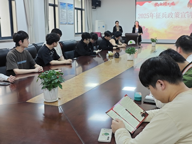 為響應國家征兵號召,鼓勵大學生投身國防事業,生物食品與環境學院于5月23日上午十點半在生化樓三樓會議室成功舉辦“熱血鑄軍魂——2025年征兵政策宣講會”。本次宣講會由學生處國防動員科科長鄭國平主講,生物食品與環境學院黨委副書記晉松及部分學生參加。