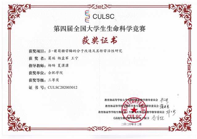 第四屆全國大學生生命科學競賽暨第三屆安徽省大學生生命科學競賽