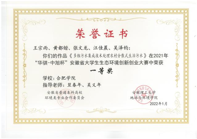 2021年安徽省大學生生態環境創新創業大賽