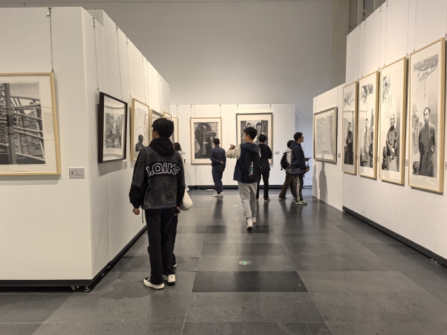 進入美術館后,師生們被各種藝術作品所吸引。展廳內各種繪畫、雕塑、攝影等琳瑯滿目,令人目不暇接。美術館正在展出的古鼎天香孔小瑜藝術展、丹青妙繪千古夢《紅樓夢》數字藝術展、安徽省新時代現實題材美術作品展、刻印年華安慶版畫精品展等更是讓師生們流連忘返。