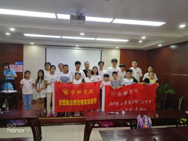 7月7日魏亞老師和經(jīng)濟(jì)系夏丹青老師,帶領(lǐng)26名學(xué)生赴合肥市肥西縣桃花鎮(zhèn)小學(xué)開(kāi)展了為期七天的暑期“三下鄉(xiāng)”社會(huì)實(shí)踐活動(dòng)。活動(dòng)期間,團(tuán)隊(duì)開(kāi)展了一系列豐富多彩的以“送文化、科技、衛(wèi)生知識(shí)到基層”為主題的社會(huì)實(shí)踐工作,在整個(gè)三下鄉(xiāng)活動(dòng)期間,經(jīng)濟(jì)先鋒隊(duì)的全體成員們凝心聚氣、團(tuán)結(jié)互助,在克服諸多生活上及工作中遇到的實(shí)際困難的同時(shí),以飽滿的政治熱情、嚴(yán)謹(jǐn)務(wù)實(shí)的工作作風(fēng)和服務(wù)基層、以人民為本的價(jià)值理念,再次彰顯了合肥學(xué)院青年學(xué)子昂揚(yáng)向上的時(shí)代風(fēng)貌,并以優(yōu)秀的實(shí)踐成績(jī)?yōu)楸敬稳锣l(xiāng)活動(dòng)畫(huà)上圓滿的句號(hào)。