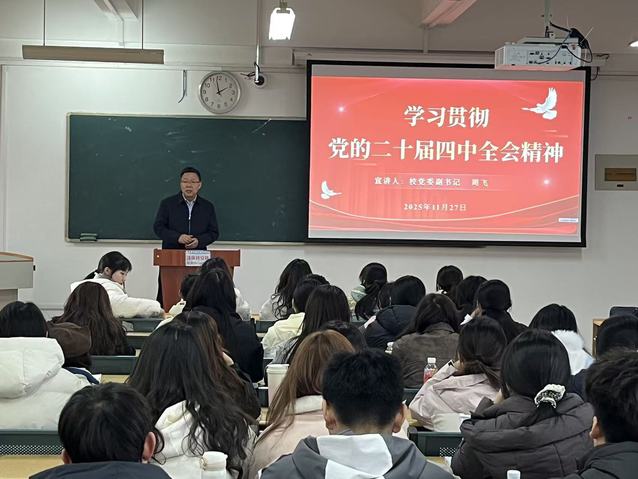 為引導青年學生深刻領會黨的二十屆四中全會精神,將個人成長融入國家發展大局,11月27日下午,校黨委副書記周飛為文化與旅游學院漢語言專業學生講授專題思政課,為青年學子帶來了一場思想深刻、內容充實的精神洗禮。