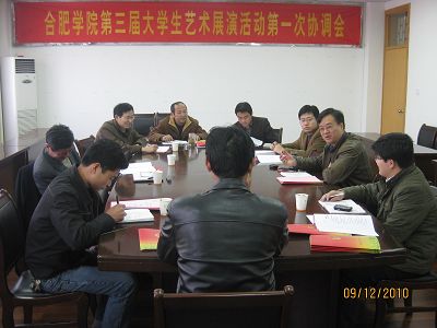 為全面推動合肥學院第三屆大學生藝術展演活動的開展,129日下午,合肥學院第三屆大學生藝術展演活動第一次協調會在南艷湖校區行政樓召開。會議由副院長丁明主持,團委、科研處、工會、藝術系、中文系、教育系負責人應邀參加。