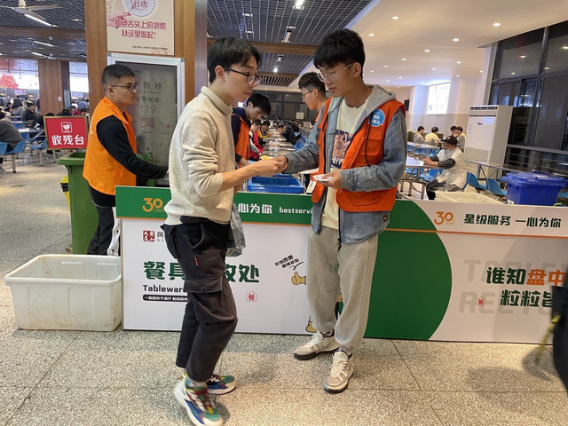 一粥一飯,當思來不易;半絲半縷,恒念物力維艱。11月1日,校青年志愿者聯合會組織的“光盤行動,踐行勤儉”活動拉開帷幕。同學們憑借無食物剩余的盤子就可在食堂餐具回收領取一張“光盤券”,集齊一定數量“光盤券”即可兌換禮品。活動期間,每日被送回餐具回收“光盤”的數量明顯增加。