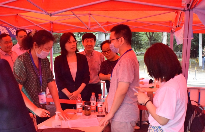 校長吳春梅、研究生處、學生處、公共事務與國有資產管理處、后勤集團負責人及各招生培養單位院長、書記親臨研究生報到點檢查指導迎新工作。校長吳春梅強調在疫情防控常態化條件下,相關單位和部門要細化各項服務,確保新生入學報到工作平穩有序、有條不紊。在經濟與管理學院、人工智能與大數據學院、能源化工與材料學院、生物食品與環境學院等研究生分報到點,校長吳春梅與報到的新生親切交談,詢問新生來自哪里、本科畢業于哪所院校、研究生學習什么專業、報到是否順利等,勉勵他們盡快適應學校新環境、進入良好的學習狀態,并現場看望了迎新點工作人員和學生志愿者。