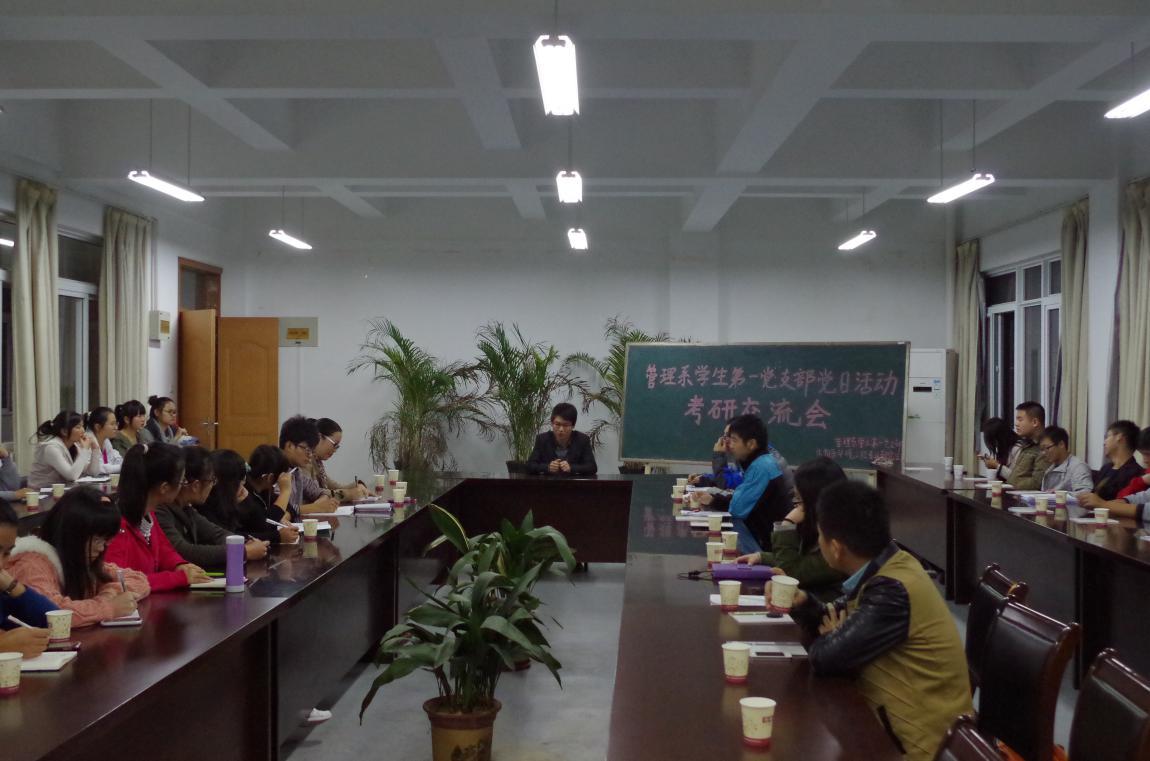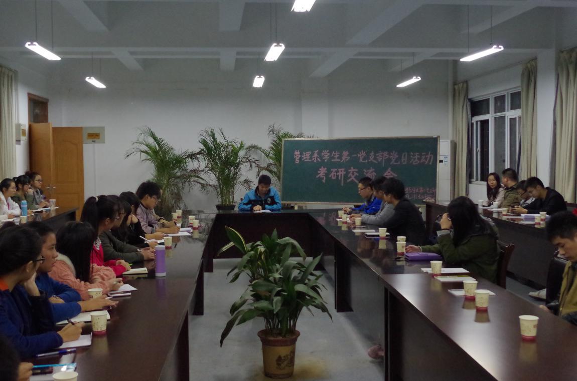 11月6日晚,我校環境工程專業研究生在研究生處和生物與環境工程系的支持下,在管理系黨支部會議室為管理系本科生開展了一場考研講座暨考研交流會。此次交流會由研一班長張文明主持,研究生曹興安、鄧飛飛、徐芳麗、張曉敏、金沁和龔晨分別發表演講,研二學生邴常遠最后作總結,最后研究生與本科生進行自由交流。