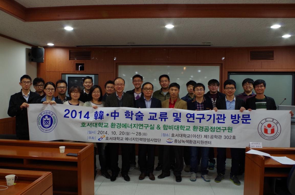 10月23日上午我校研究生訪問團(tuán)與湖西大學(xué)師生交流學(xué)習(xí)開幕式在第一工學(xué)館舉行,鄭鎮(zhèn)渡教授致歡迎詞,并介紹了湖西大學(xué)環(huán)境能源研究所、現(xiàn)階段正在研究的項目以及實驗室現(xiàn)狀。我校王磊老師對湖西大學(xué)的熱情歡迎表示感謝,并介紹了合肥學(xué)院、合肥環(huán)境工程研究院,以及我校校企合作培養(yǎng)研究生和國際合作育人的情況。下午大家參觀了湖西大學(xué)校園和韓國忠南綠色環(huán)境支援中心。該中心負(fù)責(zé)忠南地區(qū)環(huán)境污染處理處置、政策制定和技術(shù)支援等。