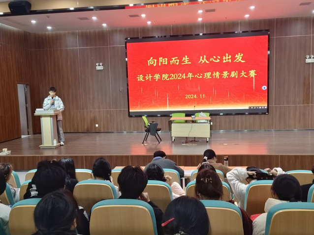 為引導學生關注自身及他人身心健康,2024年11月19日下午2:30 ,設計學院心理工作站(知心語社)于55棟205報告廳舉辦“向陽而生,從心出發”主題心理情景劇表演賽。本次活動旨在以“情景劇”形式生動呈現同學們在學業、社交、家庭中等多方面遭遇的困擾,幫助同學們更直觀的發現并解決問題,傳遞積極心理正能量,營造積極向上的氛圍。