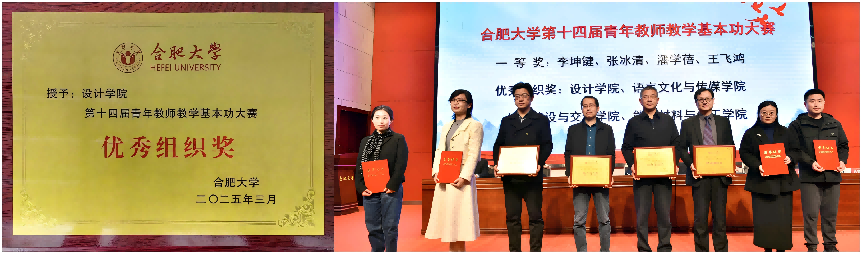 2025年3月14日,合肥大學第14屆青年教師教學基本功大賽決賽圓滿落幕。經過激烈角逐,設計學院參賽教師在此次賽事中表現優異,李坤鍵榮獲一等獎,彭辰璐榮獲二等獎,楊露榮獲三等獎,設計學院榮獲“優秀組織獎”。