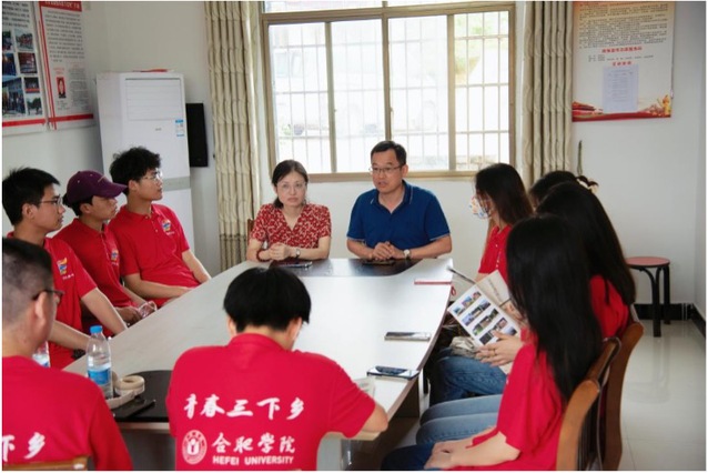 6月23日上午八點半,合肥學院設計學院暑期“三下鄉”社會實踐重點團隊在帶隊老師吳嫻的組織下,開始了今天的活動日程。上午八點四十,吳老師和當地村干部一起帶領同學們到梧川村黨群服務中心,在黨群中心會議室與梧川村黨總支第一書記申圣慶召開對接會。申書記首先對合肥學院設計學院暑期三下鄉社會實踐重點團隊師生們的到來表示熱烈歡迎,其次,申書記向隊員們介紹了梧川村的具體情況,梧川村村民有1600余人,485戶,房屋建筑以村支部為中心發散性布局。村干部團隊年輕化、專業化、知識化,高中以上學歷干部占百分之八十以上,以洪海飛為代表的年輕知識分子,積極響應黨的鄉村振興政策號召,大學畢業后選擇回到家鄉扎根基層,擔任梧川村村長。梧川村以大會山紅色文化旅游為依托,附帶草莓、菊花等特色農業,走“紅色強村,綠色富農”發展道路,引起各界關注,于2021年成功脫貧,由績溪縣貧困村轉為示范村,2019年獲得“中國美麗休閑鄉村”、2021年獲得“先進基層黨組織”等各項殊榮。申書記希望設計學院三下鄉團隊的同學們,利用好在梧川村一周的活動時間,利用同學們的專業特長,制作紅色旅游宣傳視頻、宣傳頁、特色農產品包裝設計,為美麗鄉村建設助力。