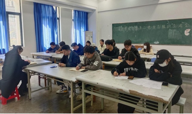 會議第二項,支部書記李旻同志帶領黨員回顧黨支部上一年度工作內容與安排,介紹組織生活會相關內容。她指出,黨員們以高標準嚴格要求自己,在班級同學中樹立榜樣形象。