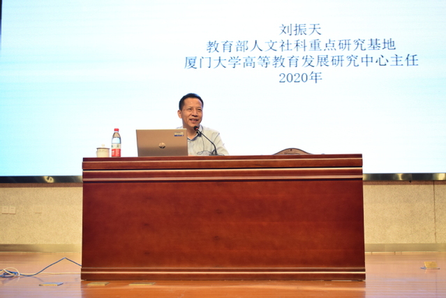 聘任儀式結束后,劉振天教授以《一流本科教育的理念與路徑》為題作了專題學術講座。劉振天從三個方面闡釋了“一流本科教育的理念及發展路徑”。他首先從高等教育大眾化引發全新變化談起,發展階段已經進入普及化階段,今天的高等教育的地位作用發生了很大的變化,體現在結構體系、環境格局、性質目標、學習者的變化等。政府和高校之間的關系也發生了變化,教育教學內容也更加多樣優質。他提出新時代新形勢需要全面提高高等教育質量,建設高等教育強國本科基礎,以本為本,建設一流本科教育。其次,對一流本科教育需要科學的理解,樹立起一流本科教育的理念。一流本科的建設需要一流人才、一流資源、一流管理、一流理念、一流規劃、一流合作以及一流文化。再次,針對如何建設一流本科教育,他提出要樹立以學生為中心的理念,以結果為導向,建立持續改進機制開展科學評價等。