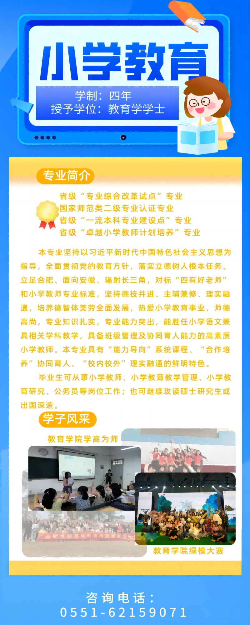 小學教育(本科 師范) 咨詢電話:0551-62159071