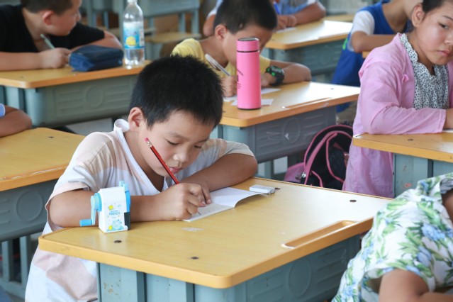 最后一節(jié)是自習(xí)課,有的孩子們將自己的暑假作業(yè)遇到的難題拿出來向志愿者們請教,志愿者們也依次耐心的給予解答;有的孩子拿出自己帶來的課外書籍,遨游在閱讀的海洋里;也有的孩子還沉浸在之前課程中,繼續(xù)思考上倆節(jié)的內(nèi)容。教室里秩序井然,這種認(rèn)真學(xué)習(xí)的氛圍讓志愿者們十分欣慰,也讓教室外的家長露出了笑顏。