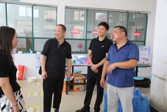 一下車,領導們便來到教學組了解教學情況,語文組的朗朗書聲、書畫組繽紛多彩的畫、歌舞組的載歌載舞以及武術組的軍體拳操,無不得到領導的極大肯定。杜娟和董承軍還特別關注孩子們上學放學的路程情況,對他們的安全問題頗為關心。接著,領導們前往食堂查看志愿者們的伙食狀況,此時恰逢炊事班同學的做飯時間,飯菜飄香讓領導們對炊事班同學的手藝贊不絕口。