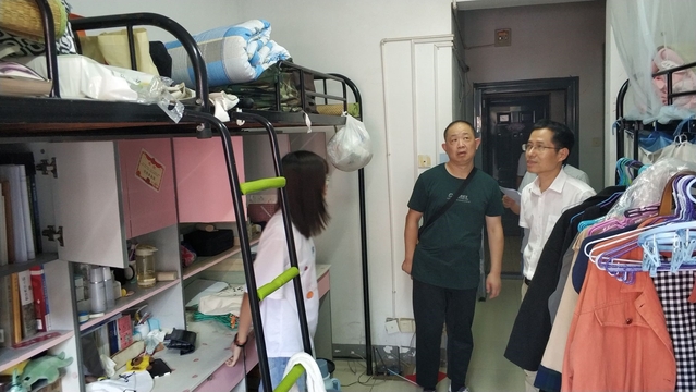 在結束了繁忙的返校流程后,文傳學院的同學們紛紛進入宿舍進行整理,為晚上的住宿和日后的宿舍生活做好準備。董書記一行到達學生宿舍后,查看了宿舍的有關情況,確認宿舍在八個月沒有同學居住的情況下是否有嚴重的霉變情況產生。同時對同學們長途跋涉的辛苦進行了慰問,也對同學們身體健康狀況進行了詢問,表達了對同學們的關心。隨后,領導們對學生在學校期間的疫情防控事項進行了說明和講解,希望同學們在學校期間也不要放松對病毒的防護。最后,董書記提出可以加強身體素質的鍛煉,提高自身的免疫力;同時指出同學們要加強對宿舍衛生的重視,營造良好的住宿環境,也降低細菌滋生的條件。
