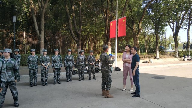 9月16日下午,語言文化與傳媒學院院長丁增武、黨委副書記張愛萍、輔導員柳守志來到新生軍訓場地看望22級新生。