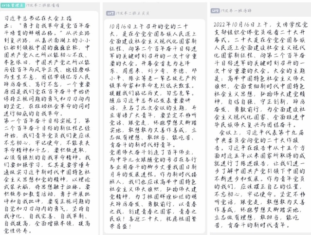 在聆聽習近平總書記的發(fā)言后,學生黨員們都感觸頗深,張倩倩同學表示:“在第二個百年奮斗目標的新征程上,我們青年黨員們更應該不忘初心,牢記使命,要有強烈的自我革命精神,要以理論武裝頭腦,將思想融于血脈。”馮錦同學則說:“我們要堅定不移聽黨話,跟黨走,敢想敢為又善作善成,懷抱夢想又腳踏實地,立志做有理想,敢擔當,能吃苦,肯奮斗的新時代青年。”王貝貝同學也感慨:“ 弘揚偉大建黨精神,為了祖國輝煌燦爛的明天踔厲奮發(fā)、勇毅前行,以青春之我,創(chuàng)建青春之國家,青春之民族!喜迎二十大,祝愿祖國繁榮昌盛!”