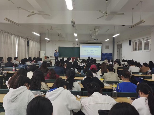為了讓同學們更深刻的理解,他還給我們舉了一個徽州三雕的例子。開辦項目時,要先熟悉政府政策,了解社會對此產品的需求,市場容量如何。同時培育多學科交叉人才,對項目進行創新性開發,讓產品能夠戰穩腳跟。徽州三雕與文創相結合,運用新媒體平臺對產品進行銷售,對賬號悉心運營,擴大粉絲群體,促使流量變現,再通過直播帶貨,線上網店的形式擴大銷路。同時建立客戶群體,向其提供優質產品及后續服務。而面對企業級客戶,可提供文創個性設計服務,為之代理生產。再建立品牌,擬成立公司,對市場進行融資。最后,他提到“互聯網+”大賽要把握好四個“明白”:想“明白”、干“明白”、寫“明白”、講“明白”。