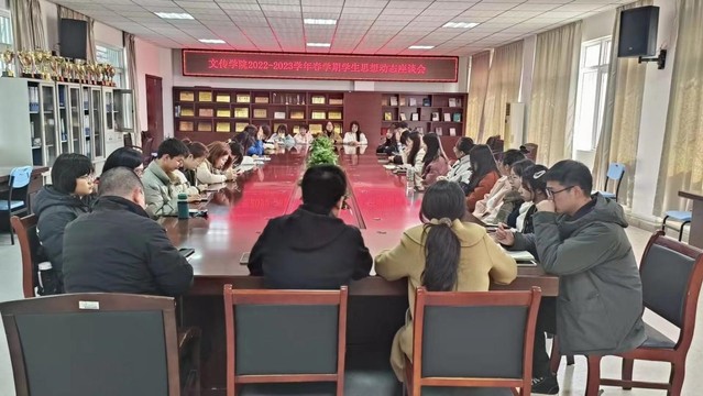 2023年2月17日中午12:00,語言文化與傳媒學院2022-2023學年春學期初學生思想動態座談會在一區善思樓C座二樓會議室召開。本次會議由語言文化與傳媒學院分團委負責人劉政主持,學生工作辦公室主任顧盼盼、教學辦公室主任章衡、學生輔導員柳守志出席會議,各年級各班班長及團員代表參會。召開此次會議的主要目的是為了了解學生證寒假期間對于國家疫情防控、社會發展和就業等個人發展的認識,聽取對學校日常管理的評價與意見,以及對寒假社會實踐和認知實習的感悟。