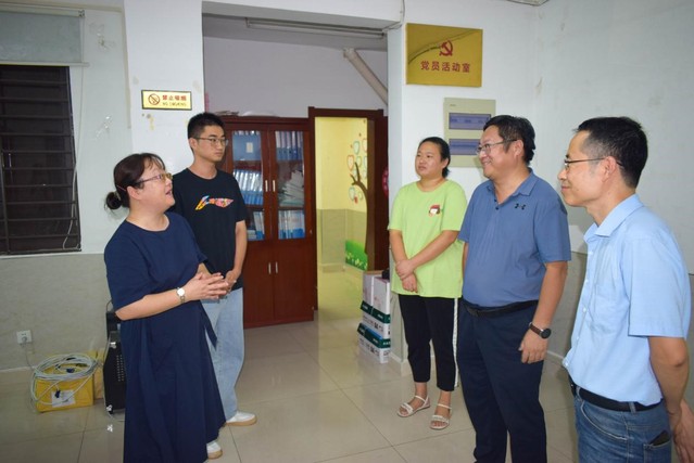 84日下午,合肥學院黨委委員、宣傳統戰部部長賈峰,語言文化與傳媒學院院長丁增武,黨委副書記張愛萍,副院長殷明明,團委副書記劉政一行走入濱湖世紀社區看望我院暑期認知實習學生。