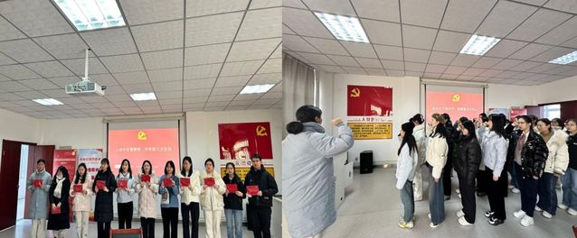 活動開始,全體學生黨員們整齊列隊,舉起右手,在領誓人鄭寶佳的帶領下重溫入黨誓詞,“我志愿加入中國共產黨……”一聲聲入黨誓詞承載著每位黨員同志加入中國共產黨時最莊嚴、最鄭重的承諾。