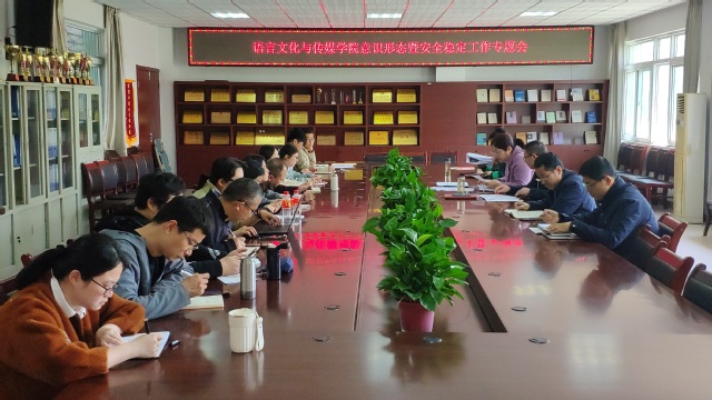 4月9日上午,語言文化與傳媒學院在學院大會議室召開意識形態暨安全穩定工作專題會,學院領導班子成員、黨委委員、紀委委員、科級干部、各黨支部書記、系(中心)主任及研究生、本科生輔導員參加會議,會議由院黨委書記儲昭輝主持。