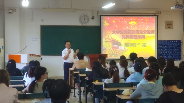 接著,丁增云從大學生黨員發(fā)揮先鋒模范作用的內(nèi)涵和具體實踐路徑進行講授,并以優(yōu)秀共產(chǎn)黨員的事跡激勵廣大青年學生,引導同學們向模范學習。