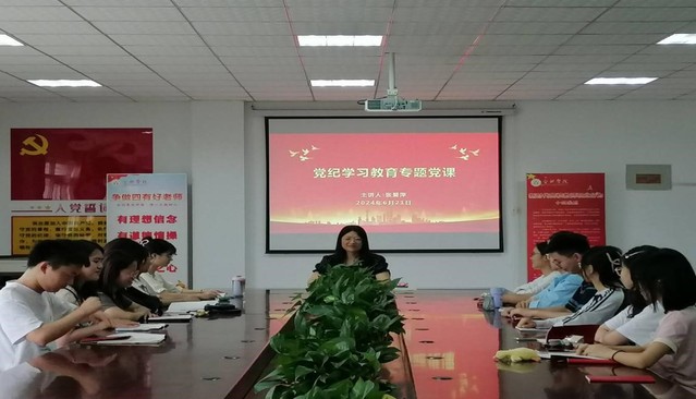 6月21日中午,語言文化與傳媒學(xué)院學(xué)生第一黨支部在5棟2樓大會(huì)議室舉行了黨紀(jì)學(xué)習(xí)教育專題黨課。此次專題黨課由語言文化與傳媒學(xué)院黨委副書記、紀(jì)委書記張愛萍主講,學(xué)生第一黨支部全體黨員參加。